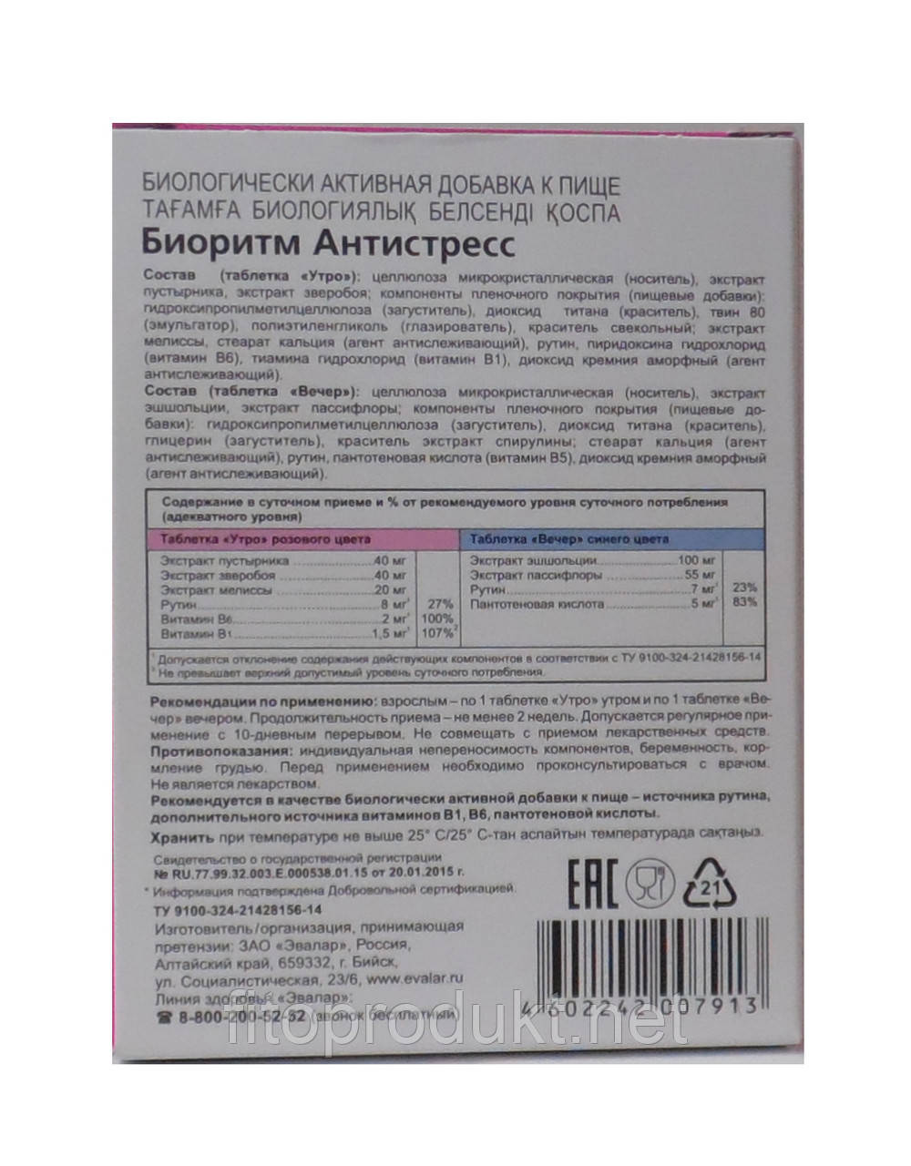 Мне нравятся биодобавки от производителя Эвалар . Хочется утром чувствовать себя бодрой и отдохнувшей, а вечером быстро засыпать . Поэтому мое внимание привлек Биоритм Антистресс . Витамины упакованы в яркую коробочку . Gretta1992 12 .09 .2012 Эффекта не чувствуется вовсе .