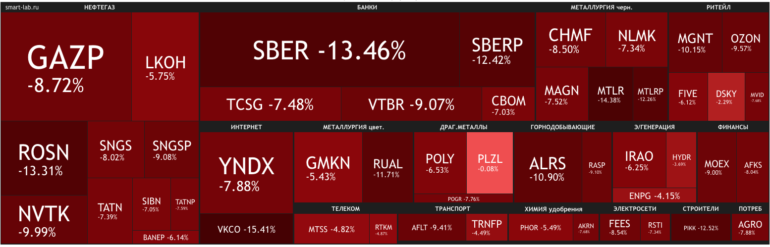 Биржа упала сегодня