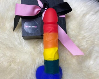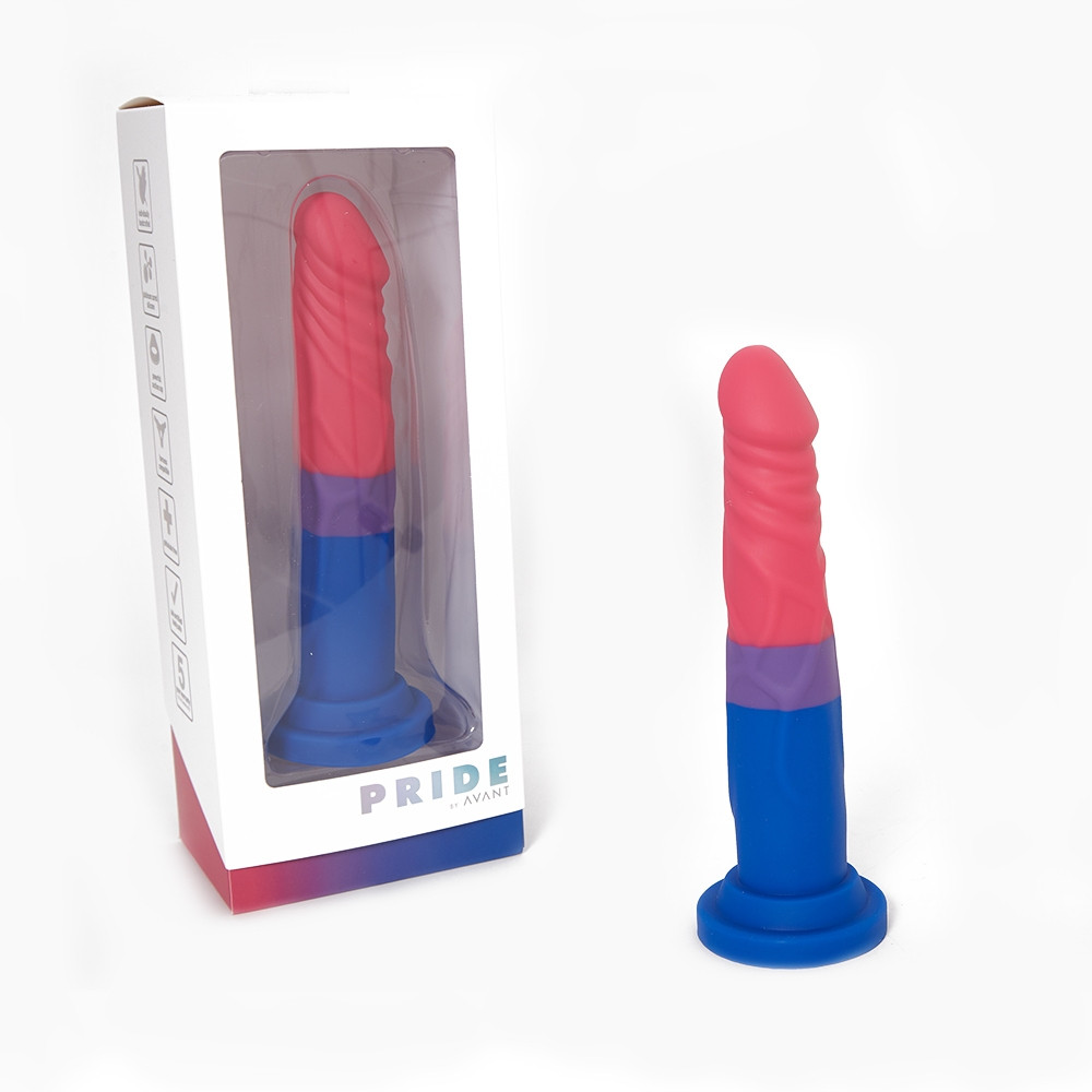 Straddle Pride and pleasure with this super soft but sturdy silicone dildo from Avant's Pride line! Silky smooth, flexible, harness-compatible, and with a surprisingly strong suction cup, try the Avant Bisexual Pride Dildo! Discreet Shipping .