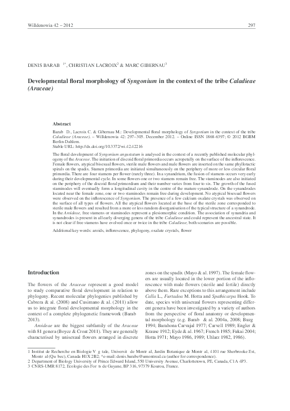 (PDF) Developmental floral morphology of Syngonium in the . . .