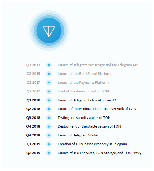 В начале сентября 2018 Telegram разослал инвесторам письма, в которых сообщил, что блокчейн-платформа Telegram Open Network готова на 70%. Эту информацию подтвердили несколько инвесторов, вложившихся в TON.