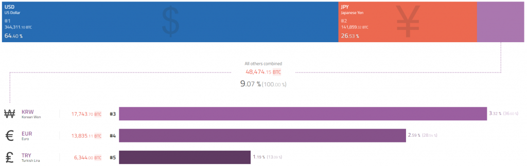 Стоит отметить, что иена является второй по популярности фиатной валютой, используемой для покупки и продажи биткоина: