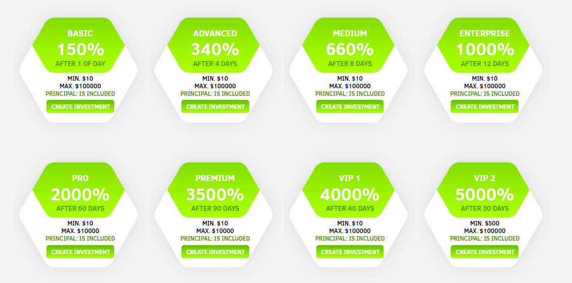 Проект предлагает 8 разворачивающиюхся инвестиционных планов: