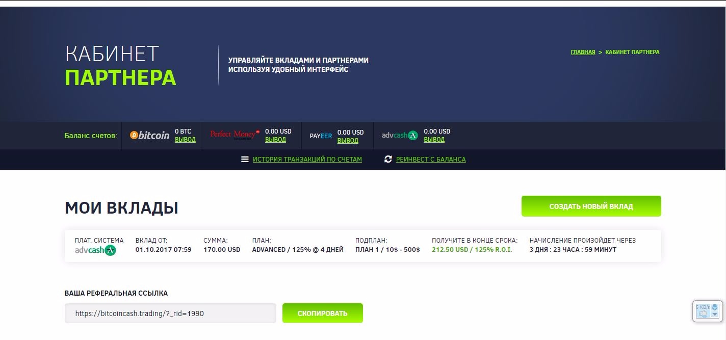 - Сайт: bitcoincash.trading.
