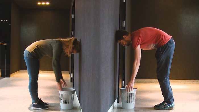 Dziewczyna szpiegowała podczas gdy w łazience, tutaj jest podglądacz, który ma dziewczynę, która wygląda jakby wypadła z Playboya problem. Jest ładną blondynką, z ładnym, dużym tyłkiem, jędrnymi cyckami, a na dodatek jest bardzo rozciągliwa. Widać, jak po