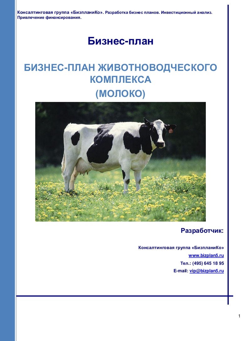 Бизнес план молочная ферма