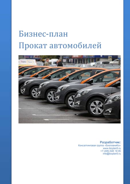 Бизнес план проката автомобилей 100 фото