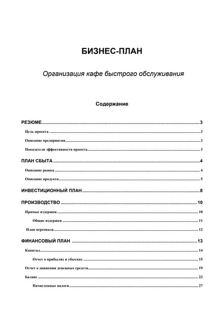 Бизнес планы кафе готовые примеры