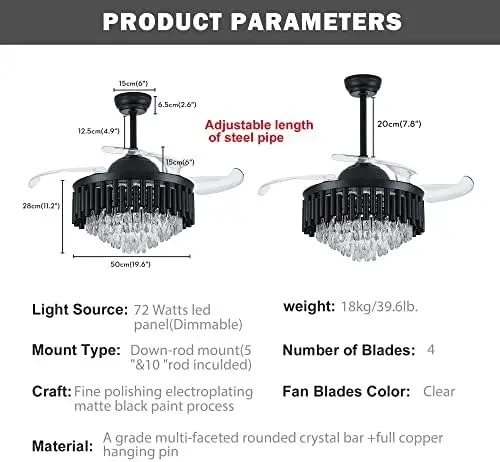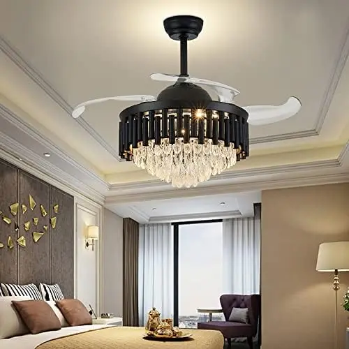 PNtElRuDwZHere you can buy Black Chandelier Ceiling Fan Lighting, Dimmable Fandelier, Crystal Ceiling Fan Dimmable LED Ceiling Light for Bedroom Living Roo with free delivery to your post office.