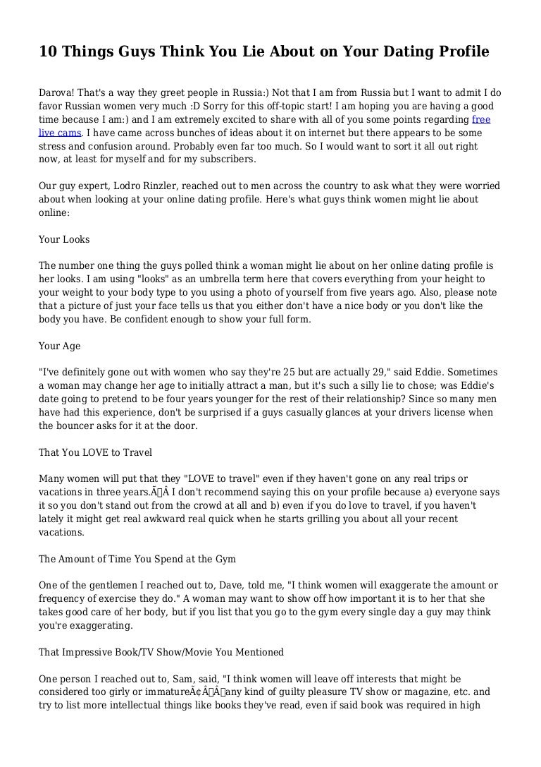 Show the best side of yourself while dating , like the fact that you're really funny, and save the rest for one of those wine fueled talks that go late into the night, or pillow talk . Pictured are some dating profile examples for men that show the perfect amount of detail . 4 . Use Spell Check and Proper Grammar .