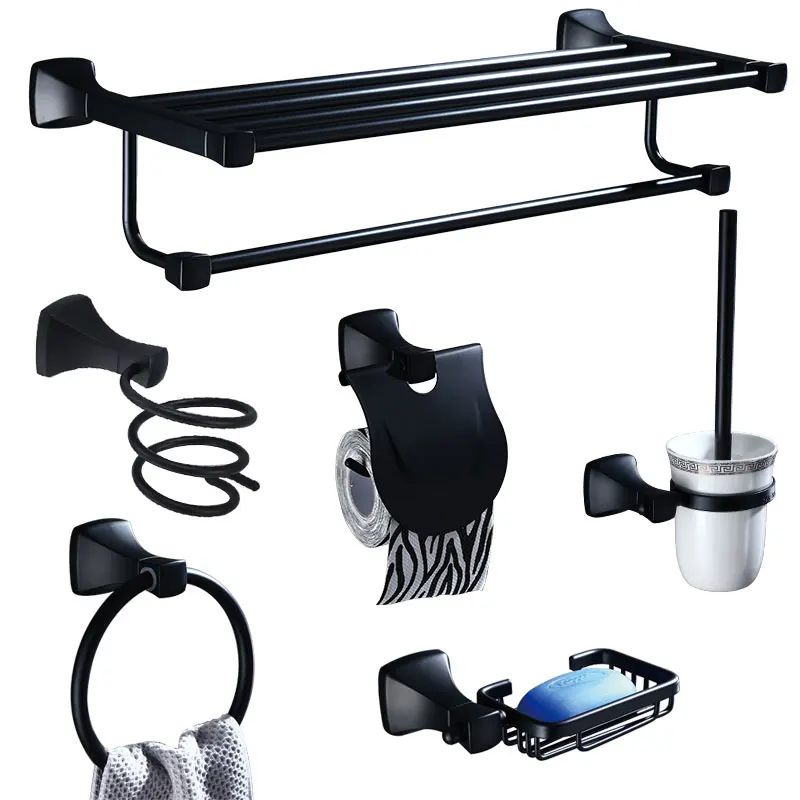 QbhaTytjHere you can buy Black Hair Dryer Rack Toothbrush Rack Toilet Brush Roll Paper Storage Rack Towel Ring Hardware 14-Piece Bathroom Accessories Set with free delivery to your post office.