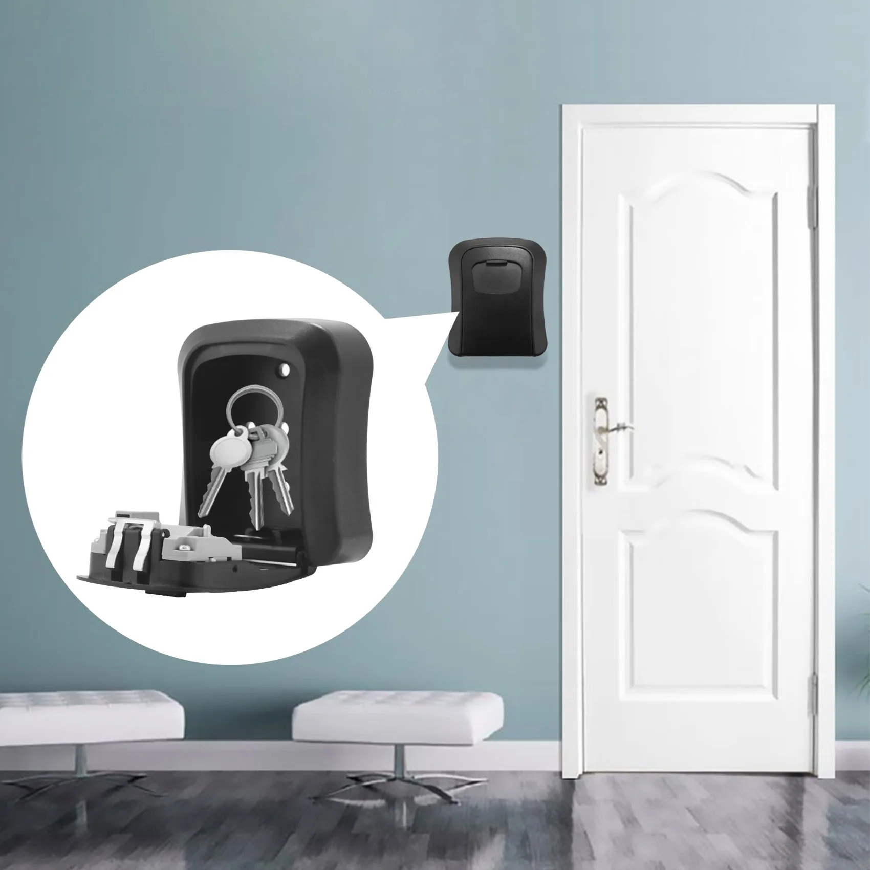BLREkrlLYaHere you can buy Black Password Key Lock Box Wall Mounted Zinc Alloy Key Box Weatherproof 4 Digit Combination Key Storage Lock Box with free delivery to your post office.
