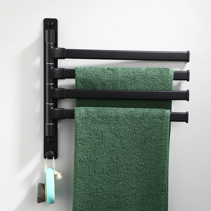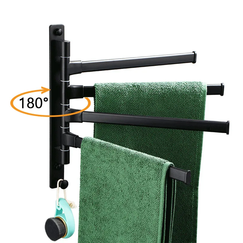 Black Towel Rack Rotatable Towel Bars Wall-mounted Bathroom Towel Holder Nail-free Shower Room Kitchen Storage Rack Accessories - Купить с бесплатной доставкой