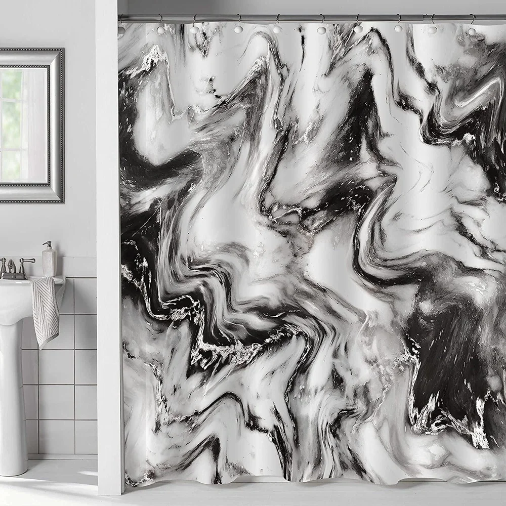 «Black White Mable Shower Curtain Colorful Gouache Rainbow Gold Crack Abstract Trippy Marbling Waterproof Bath Curtain with Hooks» по лучшей цене на рынке! Всего за 16$ (1520рублей)