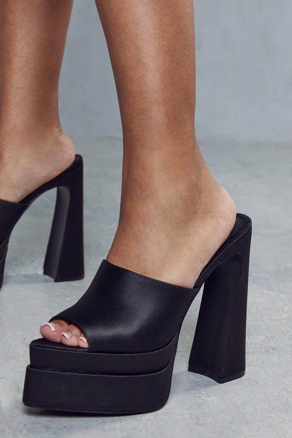 Black platform mules under table 145 photos