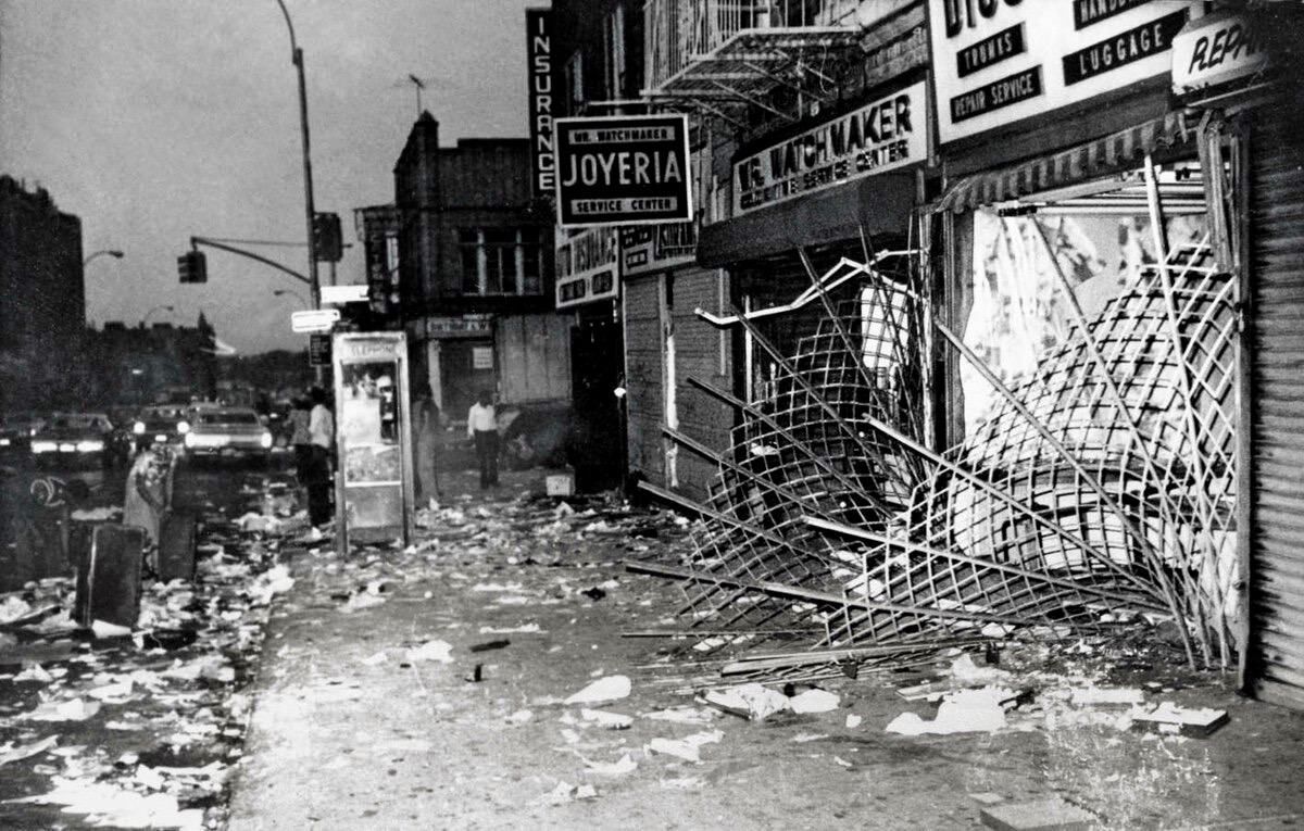 Лакомыми и вожделенными трофеями мародёров были роскошные магазины Бродвея – он был разграблен подчистую, а затем подожжён. Пожар охватил более двух километров знаменитого своим лоском района. Если мы скажем, что несколько его кварталов были "стёрты в порошок", то прям уж сильно мы не так чтобы преувеличим состояние улиц той июльской ночи. Зачастую в некоторых районах Нью-Йорка тушить пожары не позволяли сами местные. Мародёры поджигали здания, отвлекая тем самым полицейских от грабежей на соседних улицах. А как только к охваченному огнём зданию пытались приблизиться пожарные, в них тут же летели камни и бутылки с зажигательной смесью.