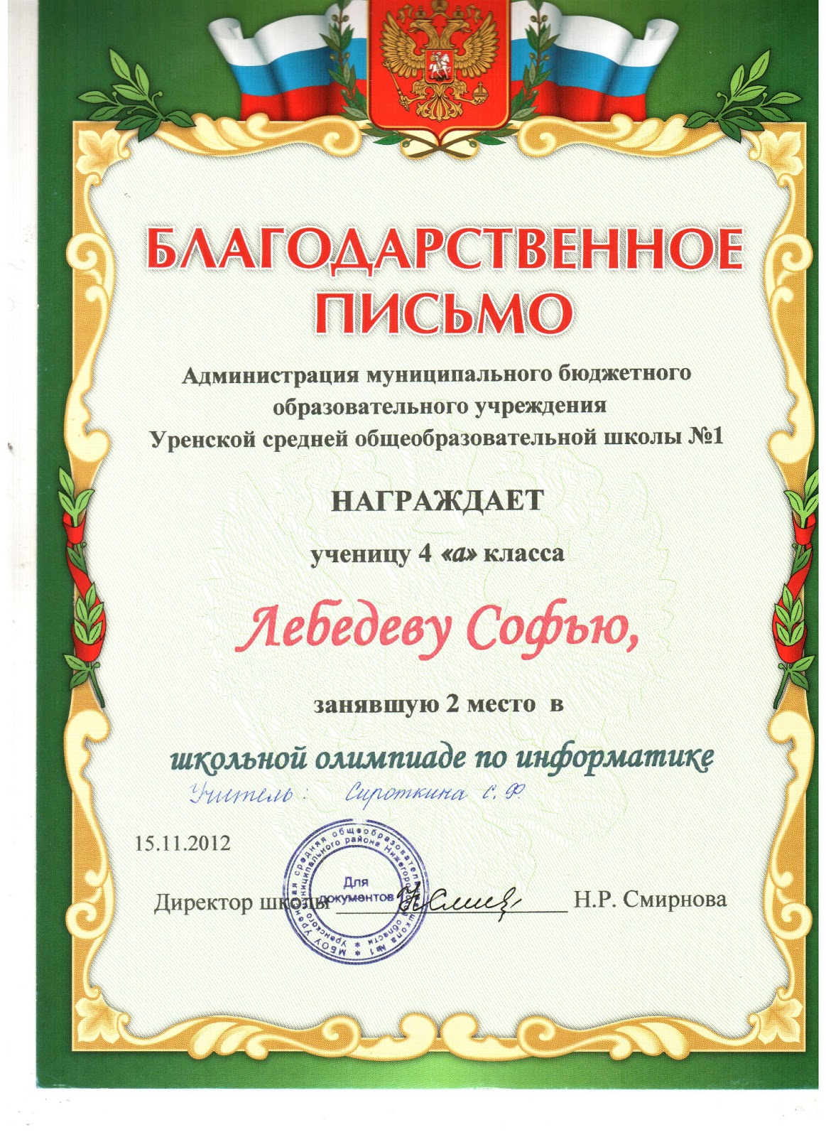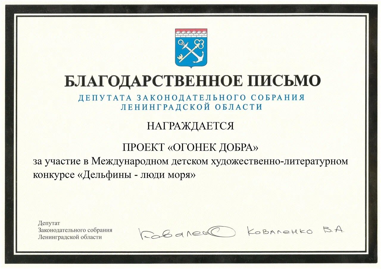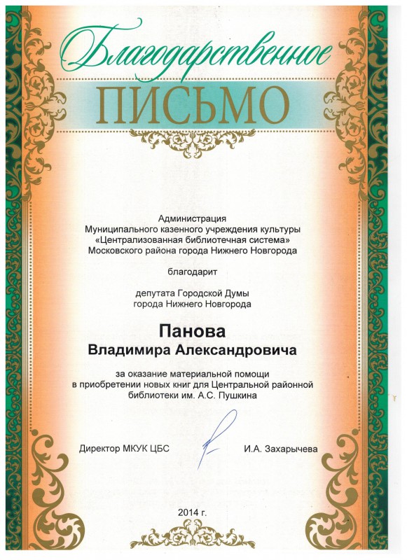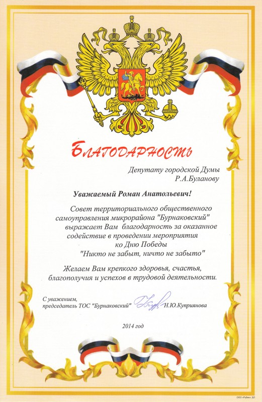 Благодарность депутату за работу