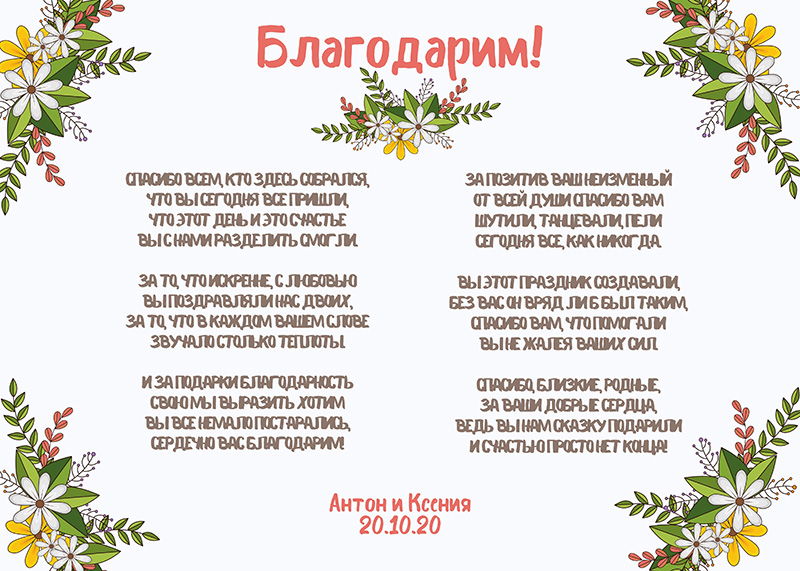 Благодарность невесты мамам