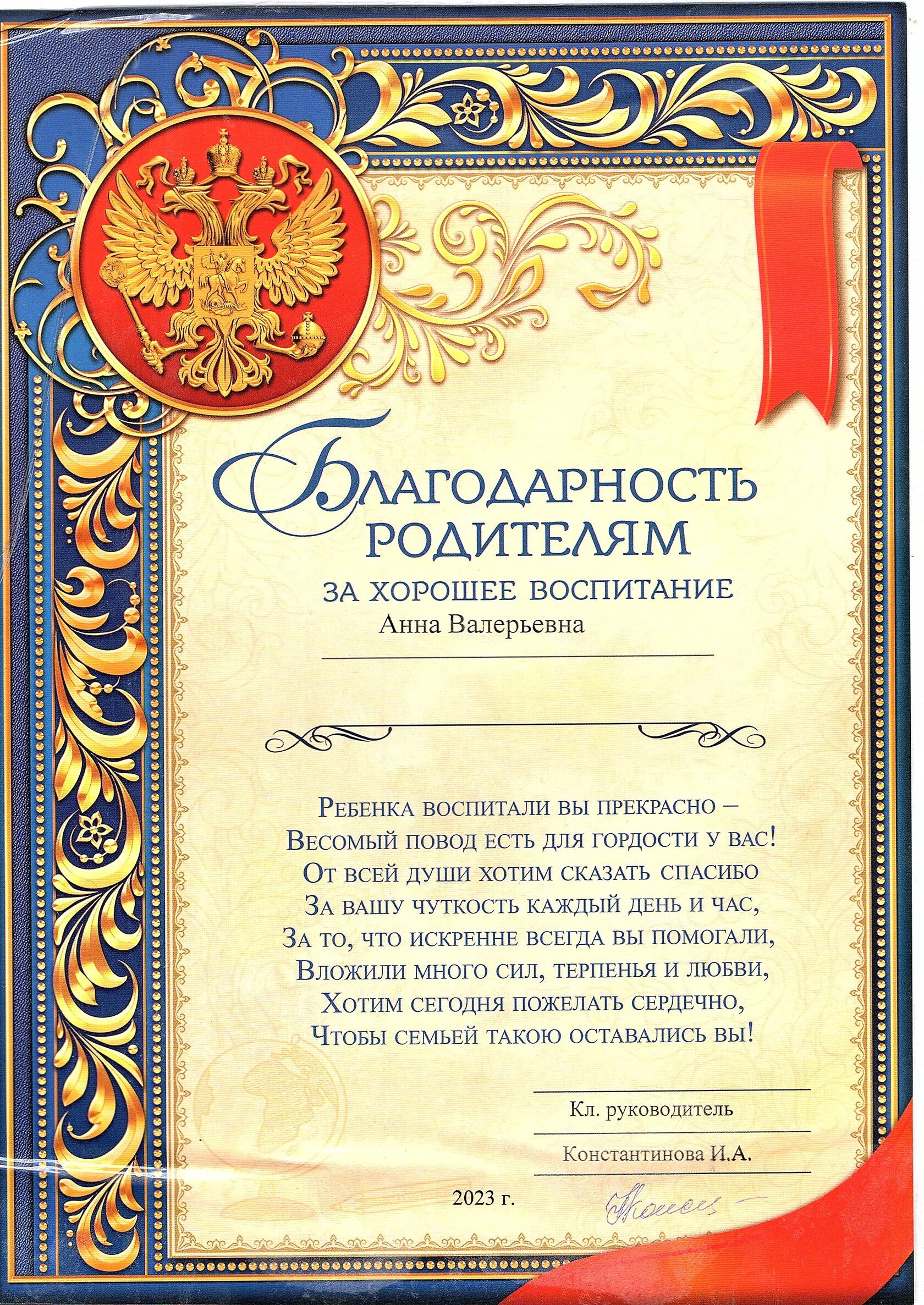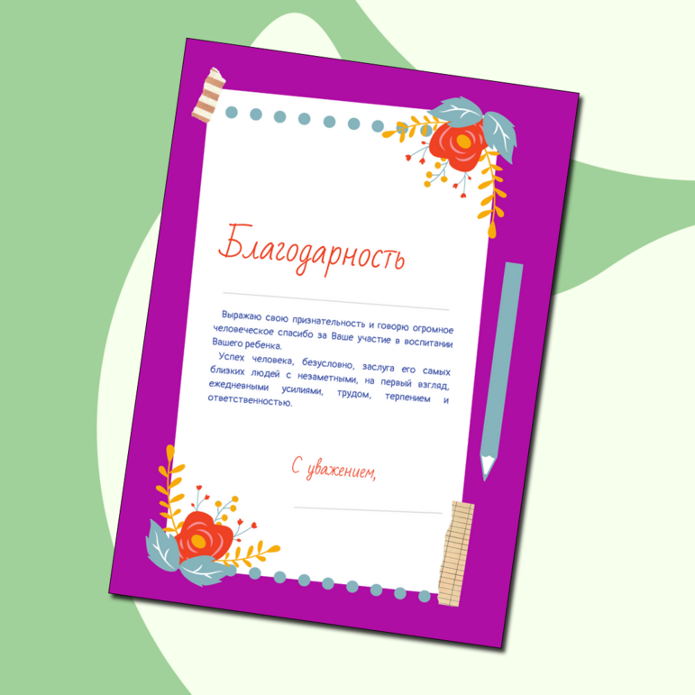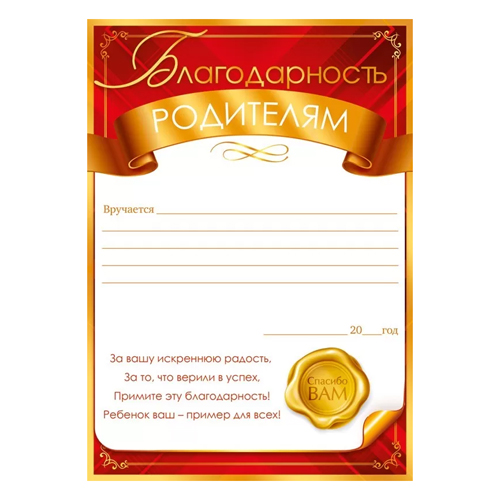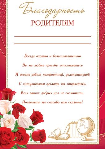 Благодарность про родителей