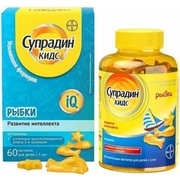 Комплекс рекомендован для детей от 3 лет . Витамины A, E C B7, B9 B6, B12, D3 дают организму суточную норму необходимых полезных веществ, а витамин PP или B3 способствует нормализации обмена веществ и выработки энергии . У «Супрадин Кидс» удобная дозировка - одна пластинка в день, давать ребенку её рекомендуется с утра во время завтрака .