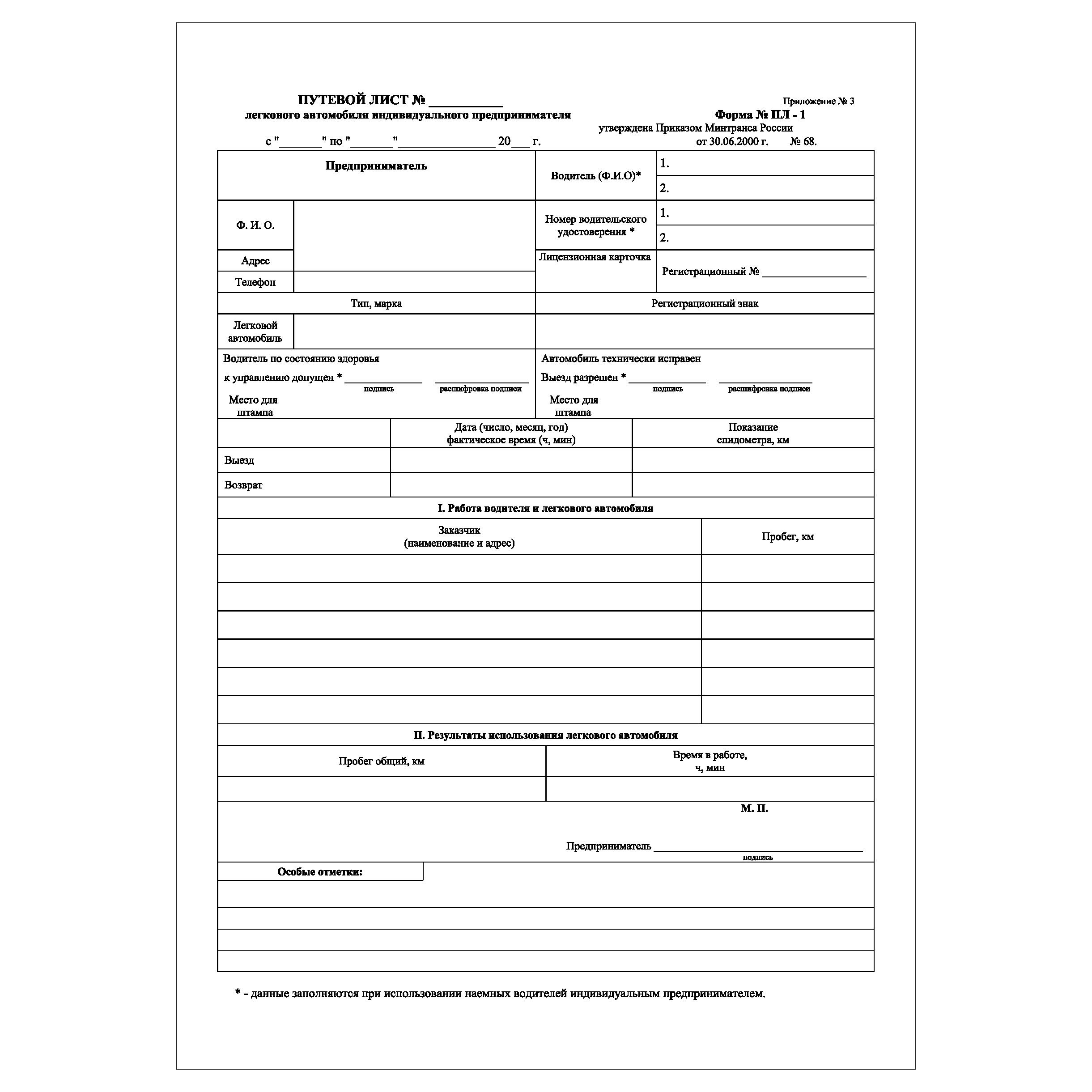 Бланк 1 предприниматель