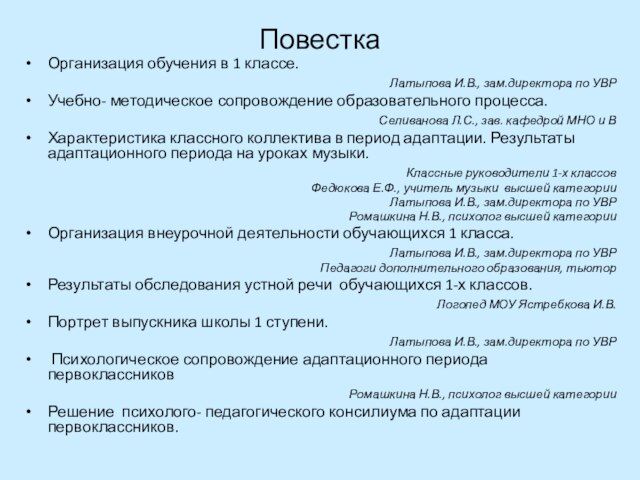 Бланк адаптация 1 класса