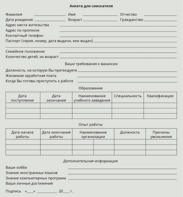 Бланк анкеты для призывника