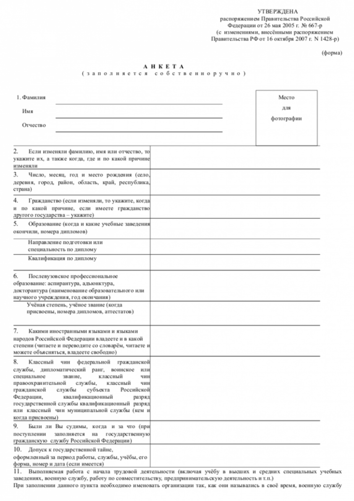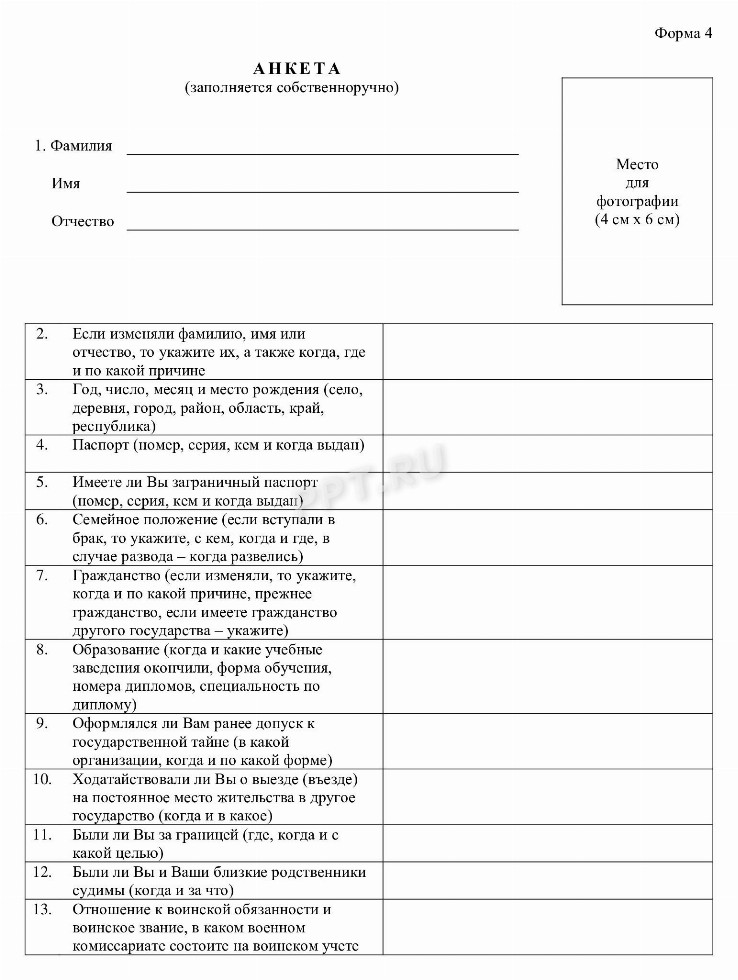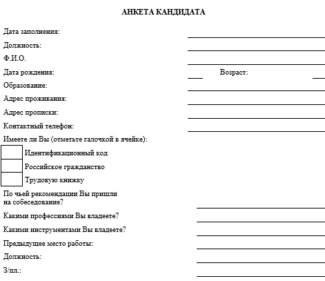 Бланк анкеты в ворде