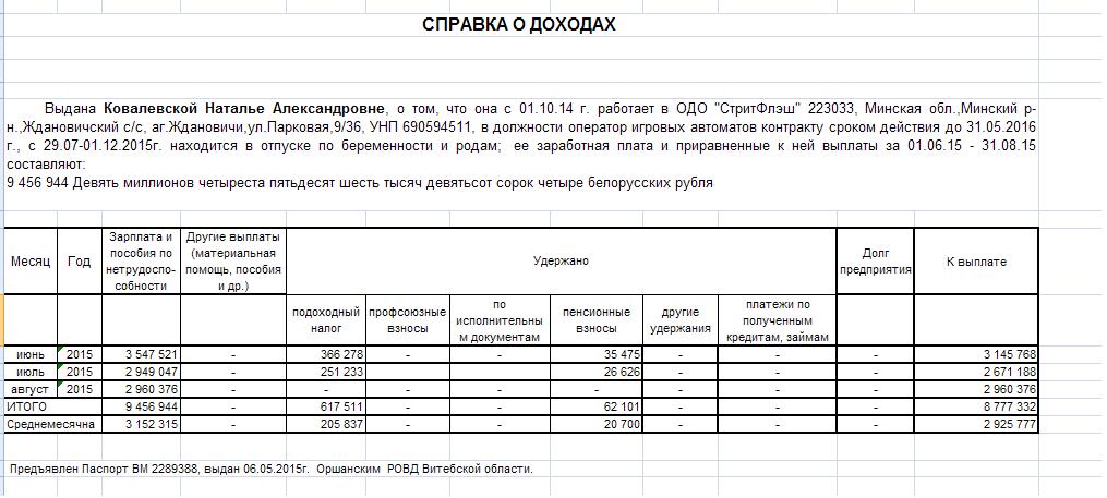 Бланк беларусбанка о доходах