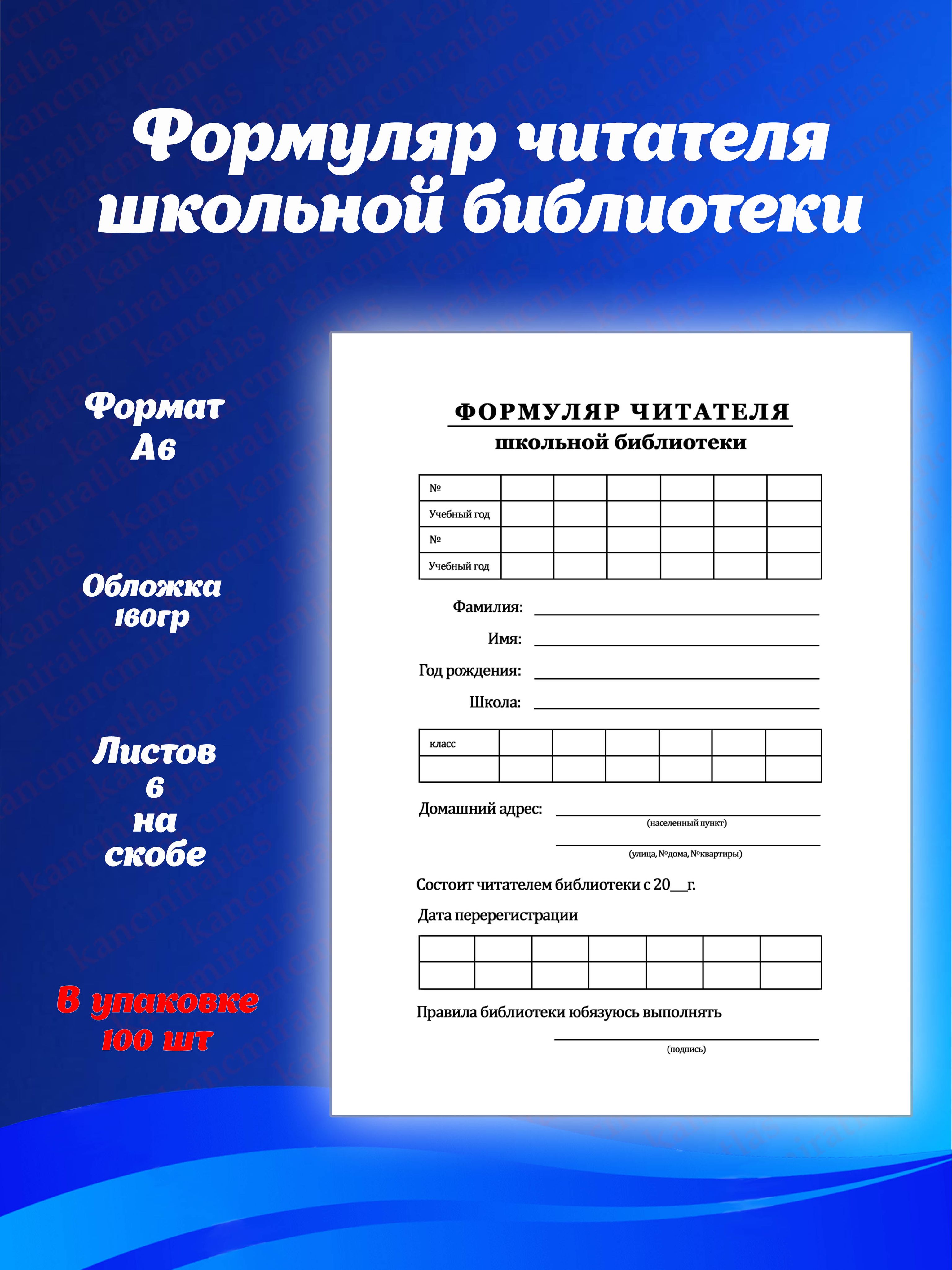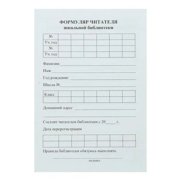 Бланк формуляра читателя 126 фото