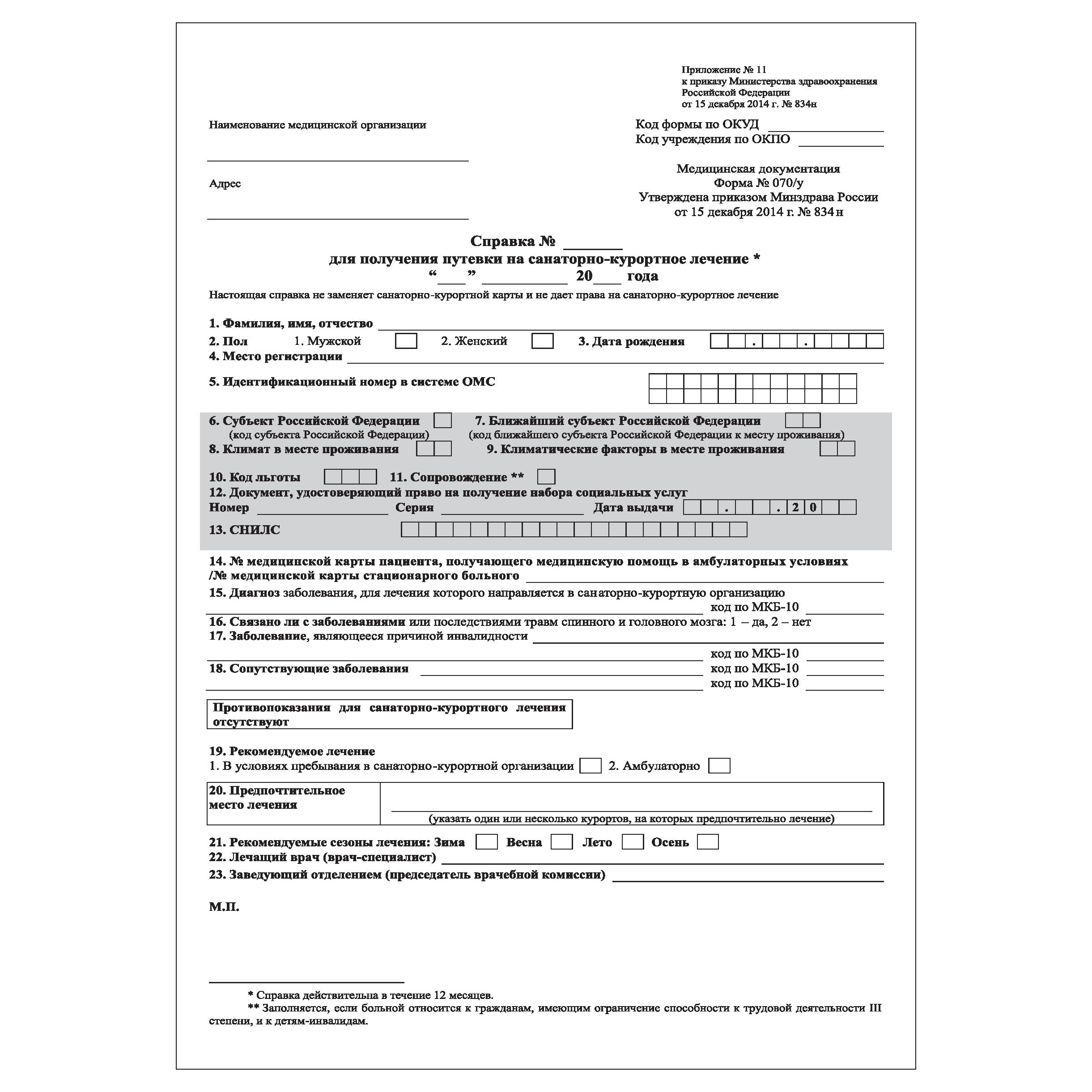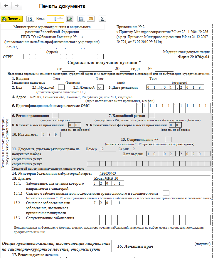 Бланк формы 070 у 04 132 фото