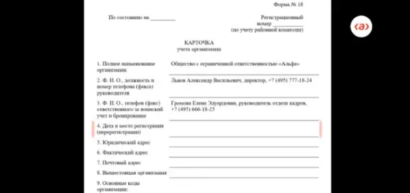Бланк формы 18 для военкомата
