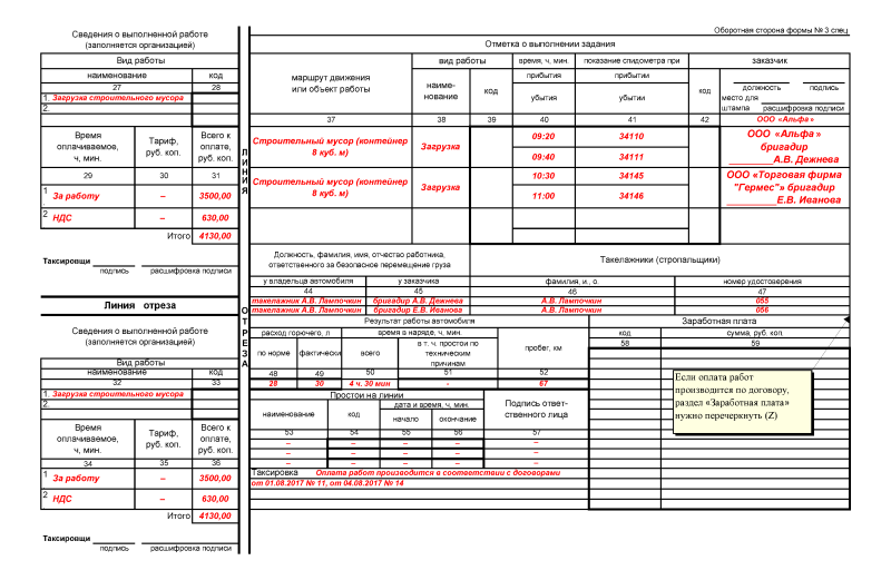 Бланк путевого листа 3 спец