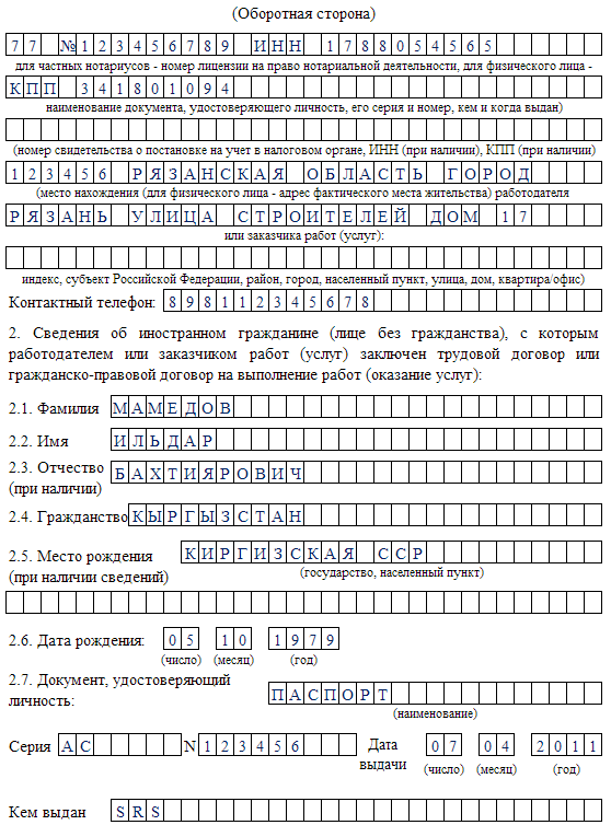 Бланк уведомления 655
