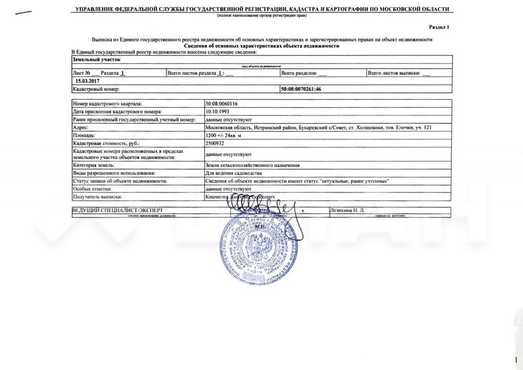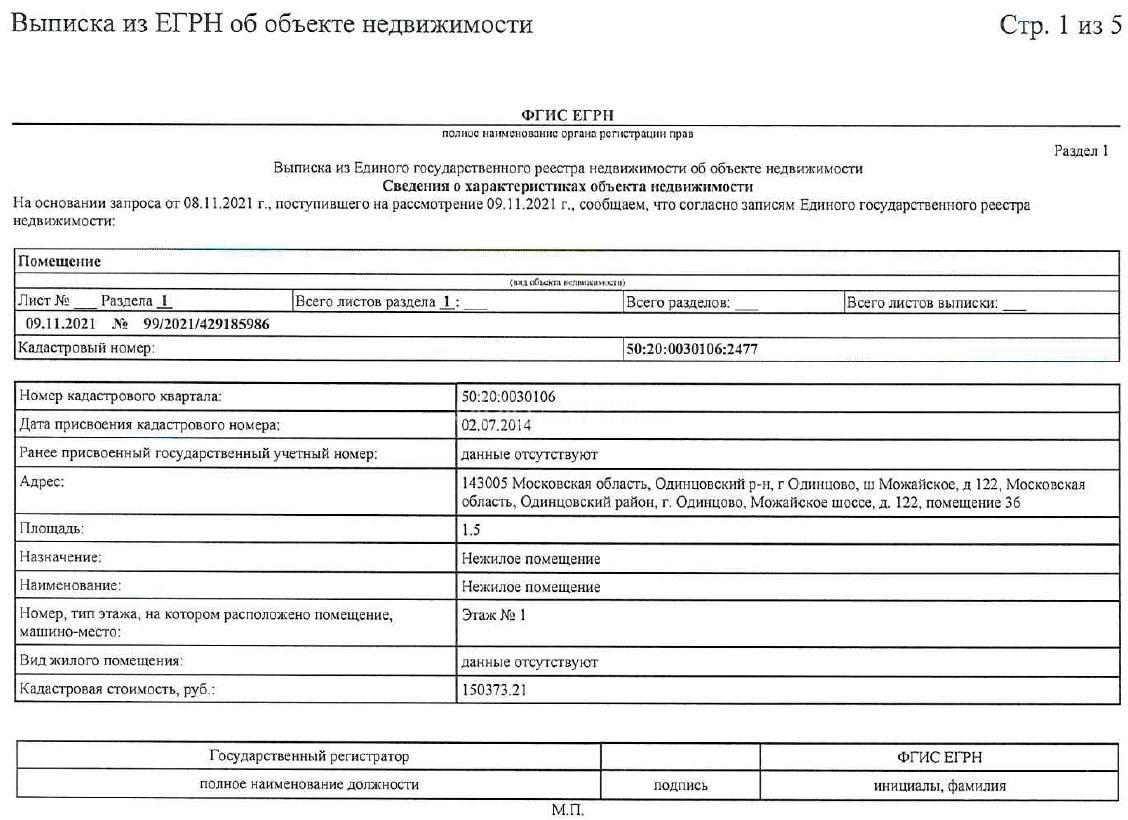 Бланк выписки егрн