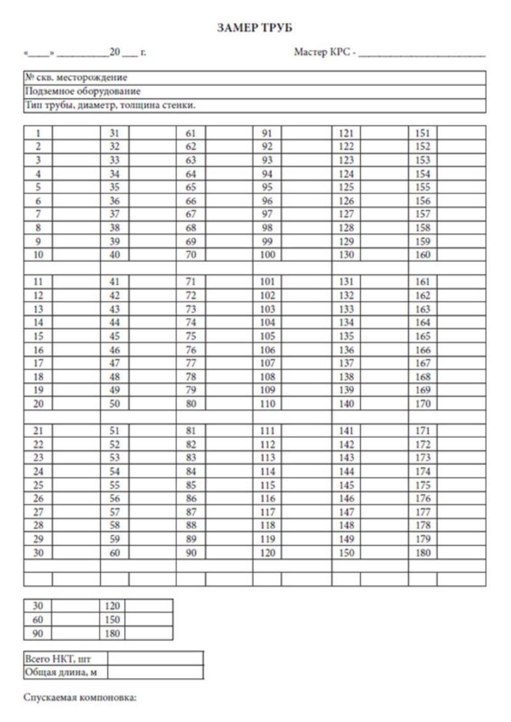 Бланк замеры температуры