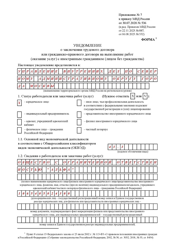 Бланка уведомлений приказ 655