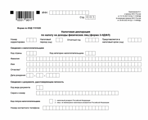 Бланки декларации формы 3 ндфл