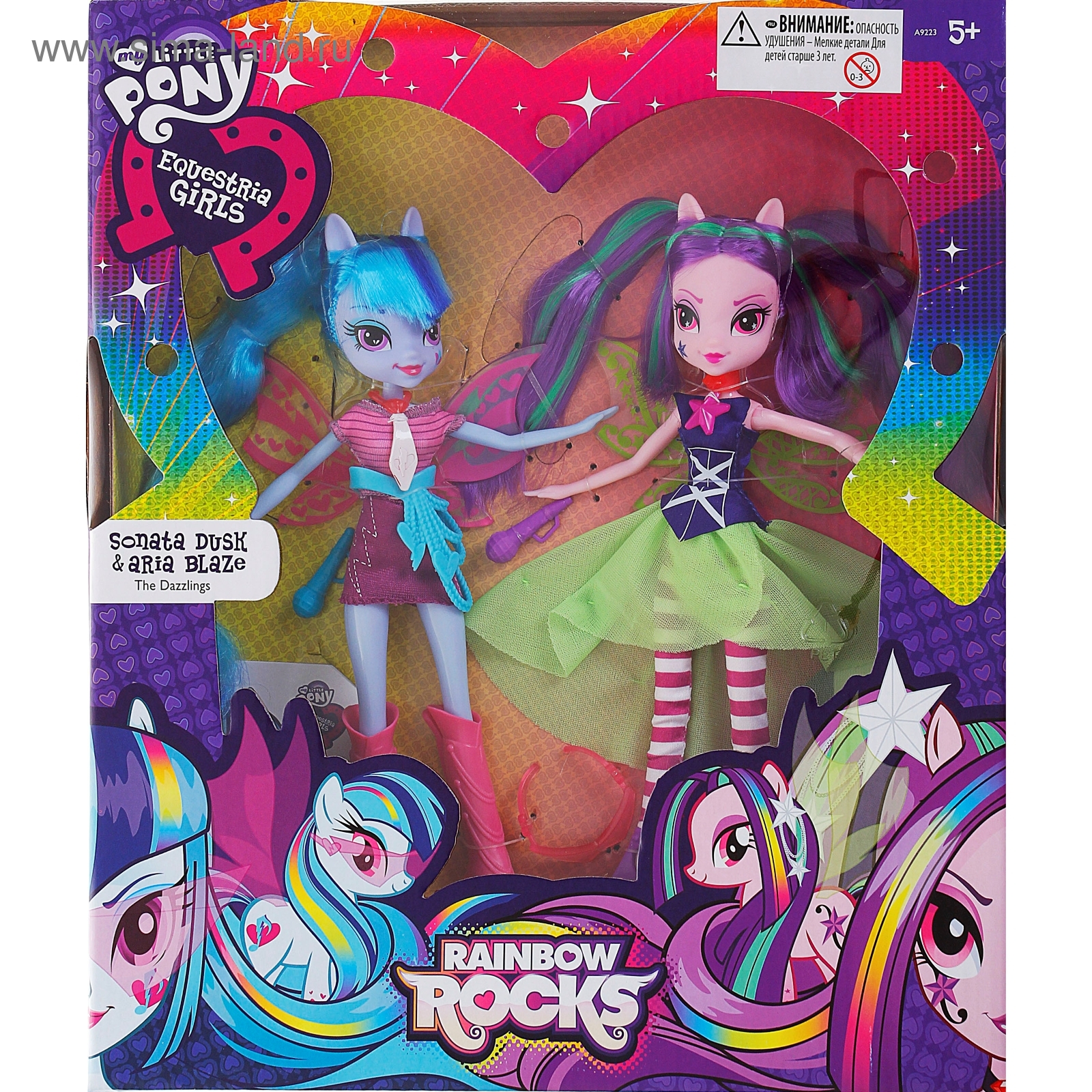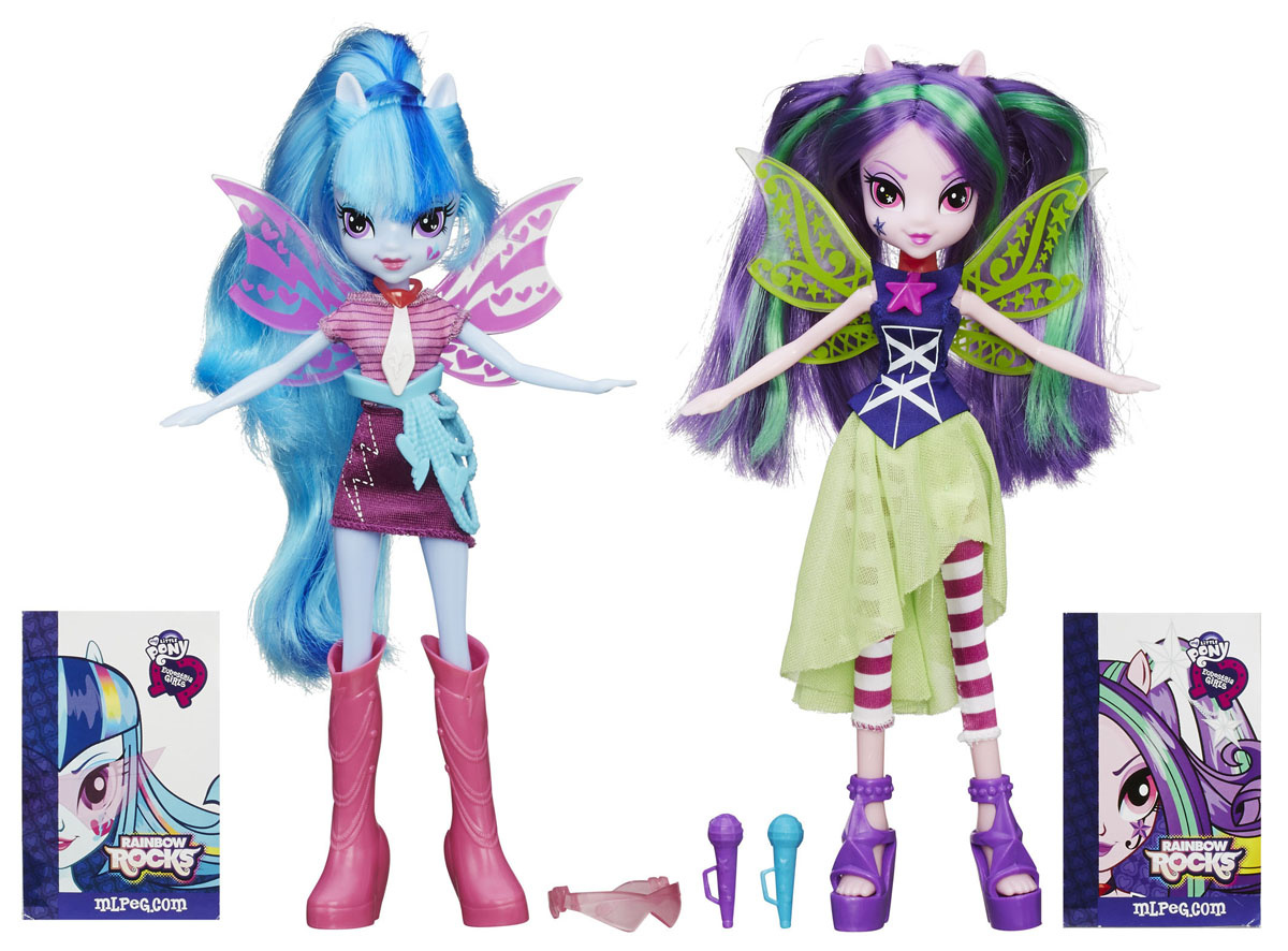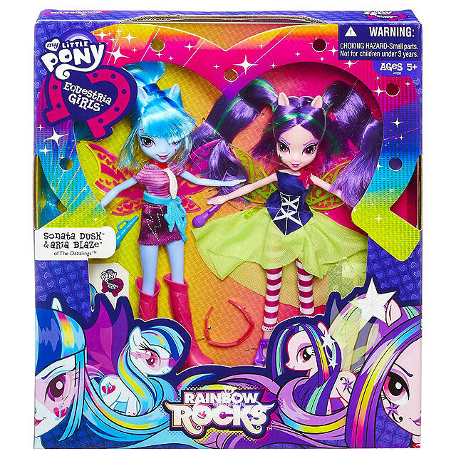 Та самая кукла с Адажио . На упаковке можно увидеть её пони-версию . Поющая кукла Адажио Даззл была указана в пресс-релизе Хасбро и показа вместе с упаковкой, на которой была показана её пони-версия, на American International Toy Fair