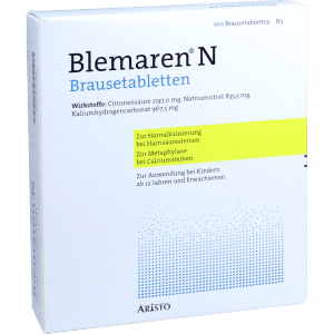 Блемарен обладает нефролитолитическим, ощелачивающим мочу действием . Фармакодинамика и фармакокинетика Применение этого препарата позволяет растворять и предупреждать образование мочекислых камней, при помощи ощелачивания мочи до оптимальных значений рН 6,6-6,8 .