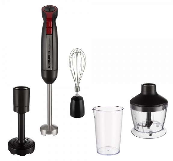 Лучшая цена на Ozon Новинка Погружной блендер REDMOND 2948, черный Мощность, Вт: 1300 Тип: Блендер Системы защиты: Защита от перегрузки (автоматический предохранитель) Емкости в комплекте: Мерный стакан, Измельчитель