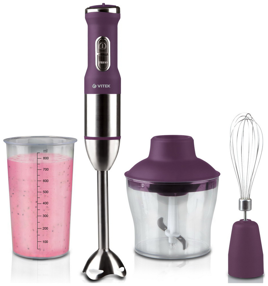 Погружной блендер Vitek VT-8537, фиолетовый Мощность, Вт: 900 Объем чаши, л: 0 .5 Количество скоростей: 8