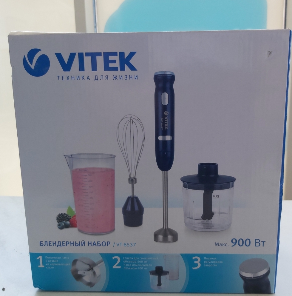 Погружной блендер VITEK VT-3415 BD, фиолетовый . 3 .5 . 15 отзывов Характеристики Задать вопрос . 125,8 б .p . В магазин . Бытовая техника . Мелкая техника для кухни . Кухонные приборы для измельчения и смешивания продуктов . Блендеры .