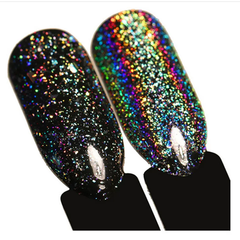 Гель-лак (9 мл) черный, с голографическими микроблестками, плотный.