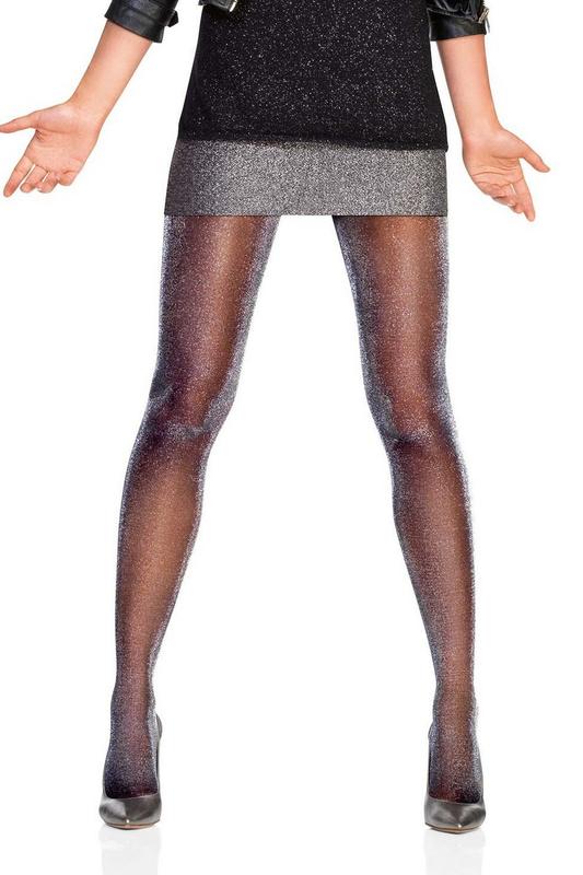 Блестящие колготки нужно сочетать с подчеркнуто-наивными нарядами: пышными юбками, платьями в цветочек За счет принадлежности к диаметрально противоположным стилям по характеру и воплощению, получится модный контраст .