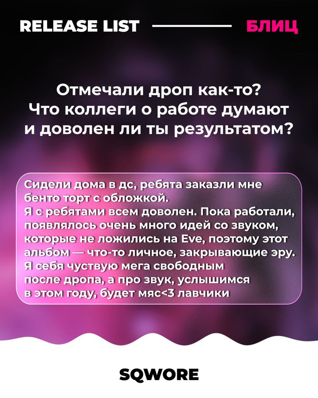 Блиц RELEASE LIST x Sqwore