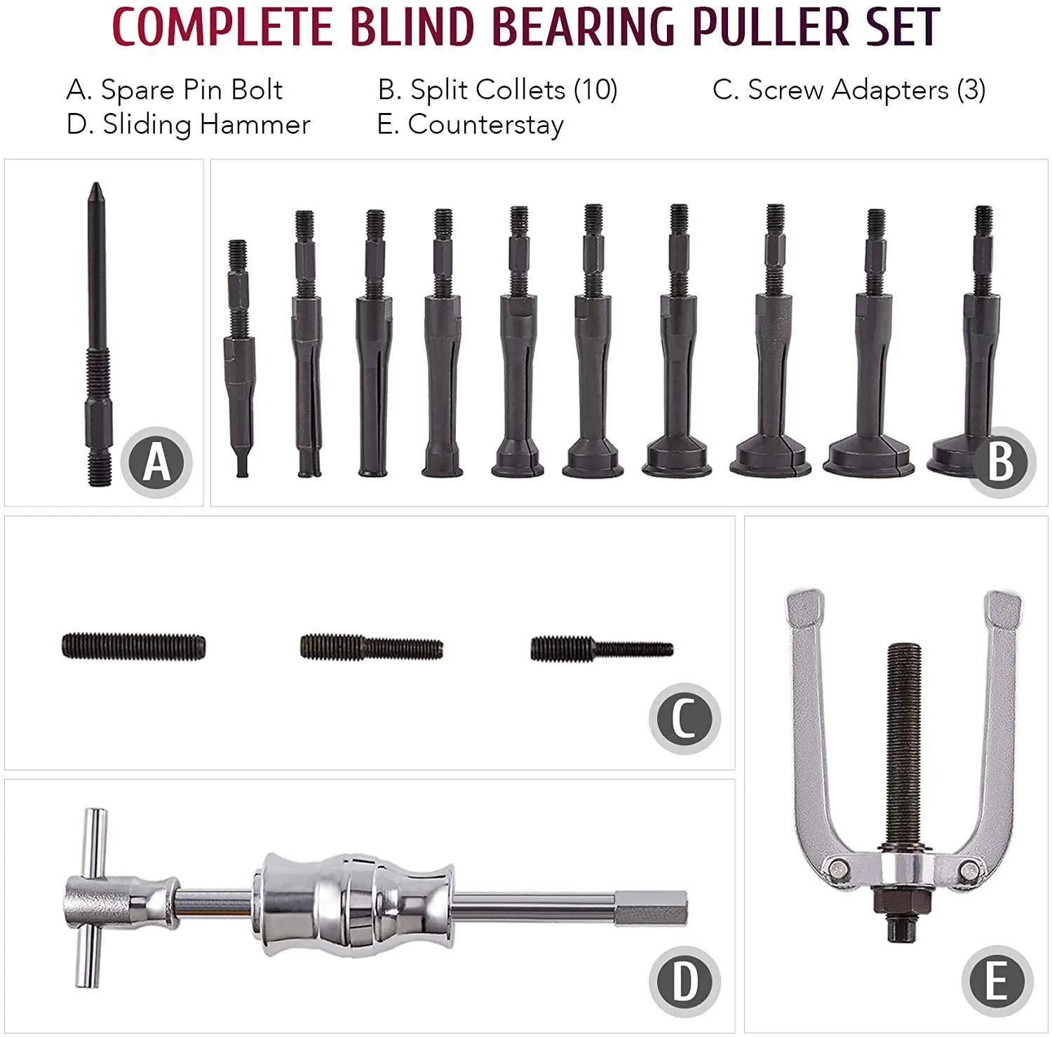 UMgJwzWfEЗдесь вы сможете купить Blind Hole Collet Bearing Race Seal Puller Extractor Kit,Slide Hammer Pilot Insert Inner Internal Bearing Removal Tool Set,16PCS с бесплатной доставкой до вашего почтового отделения.