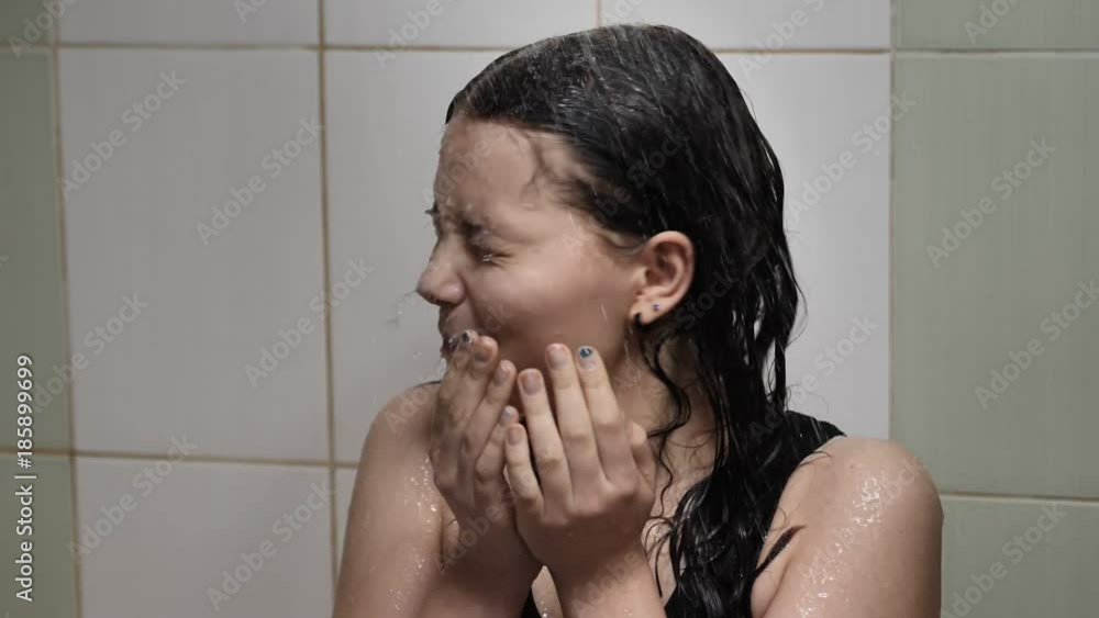 Blindfolded mom shower