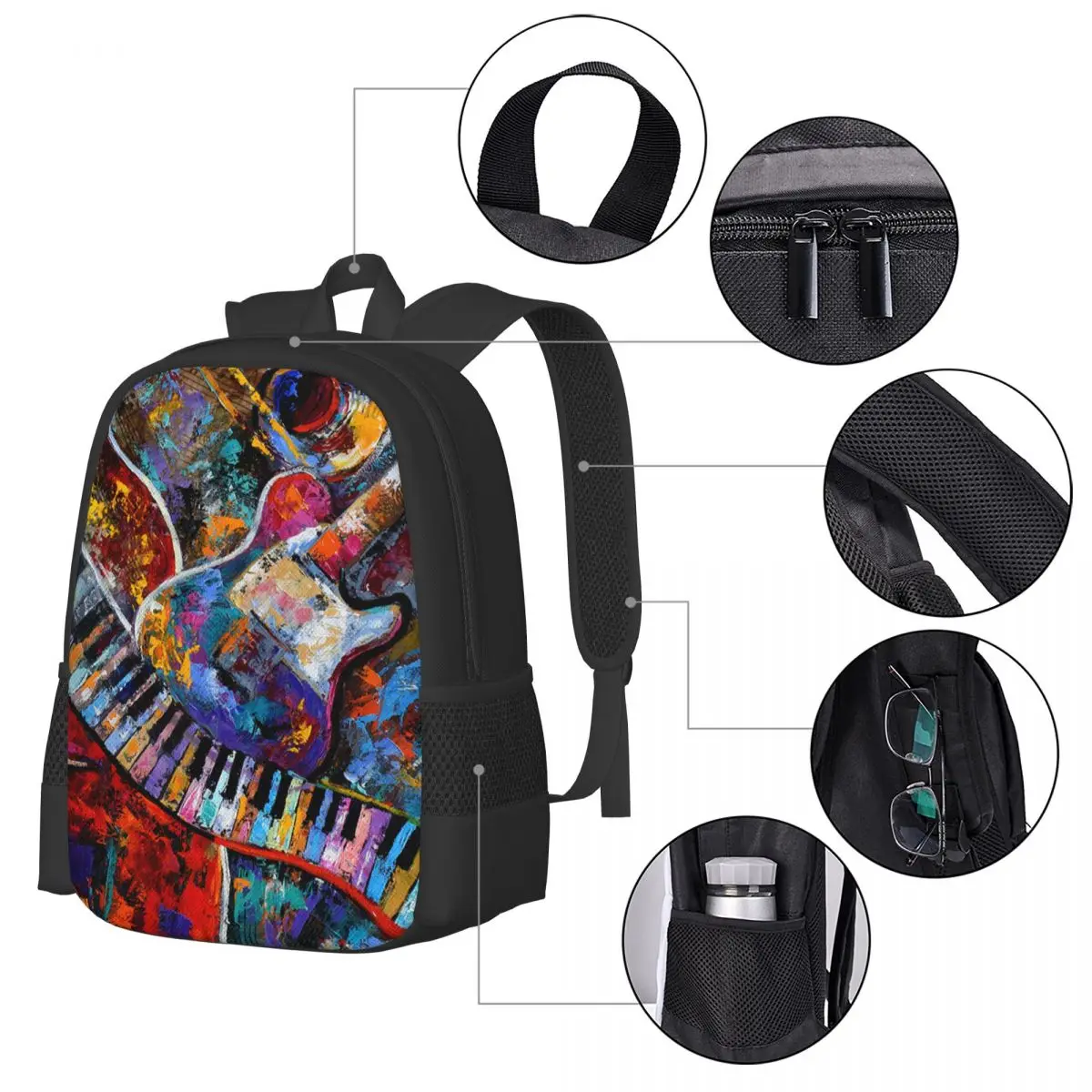 Bling Music Note Piano Simple Stylish Student Schoolbag Waterproof Large Capacity Casual Backpack Travel Laptop Rucksack - Купить с бесплатной доставкой