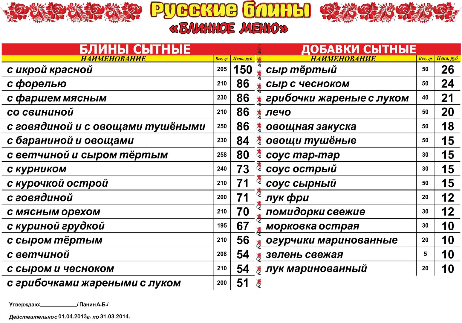 Блины орск меню 107 фото